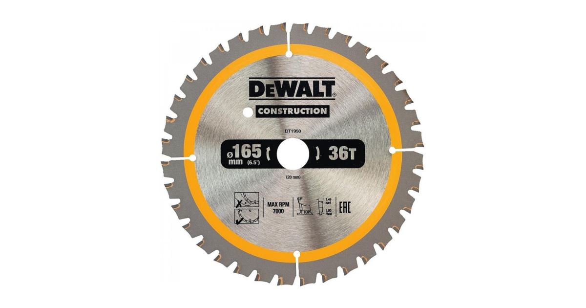 Hoja de sierra 165×20 mm, 36 dientes, ancho 1 mm para sierras inalámbricas DeWALT DT1950
