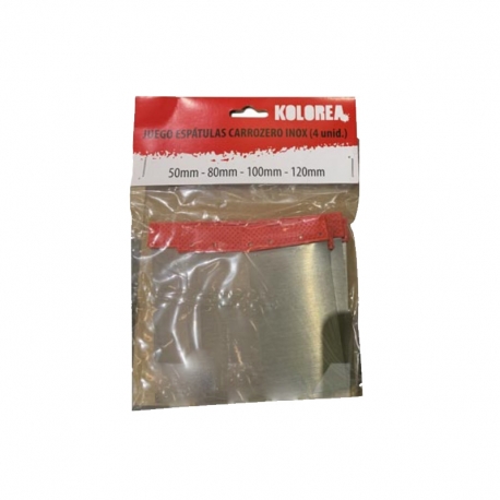 · Set de 4 unidades con diferentes medidas.· Medida espatula 50 mm.· Medida espatula 80 mm.· Medida espatula 100 mm.· Medida espatula 120 mm.