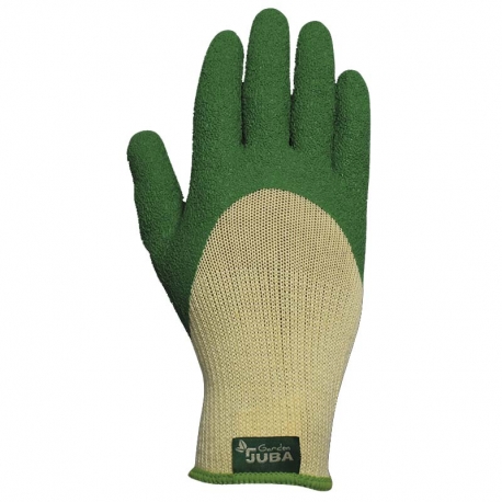 Guante Juba modelo H254G GARDEN, es un guante de poliéster con recubrimiento de látex rugoso hasta medio dorso.
