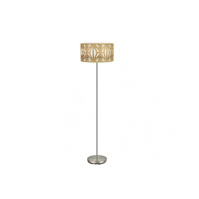 Pie de salón serie KATERINA en color NIQUEL/MADERA CLARA. Realizado en metal y textil, se caracteriza por el diseño moderno del dibujo que crea su pantalla calada, resultando una bonita composición para decorar e iluminar cualquier estancia del hogar o lugar de trabajo. Posee un portalámparas E27. Bombilla no incluida. Tiene una dimensión de 162x40x40 centímetros. En esta misma serie podemos encontrar los colgantes de 60, 50, 40 y 30 centímetros de diámetro, un pie de salón y dos modelos de sobremesa. Todos también disponible en las combinaciones de colores madera clara, madera oscura, madera gris y madera negra.